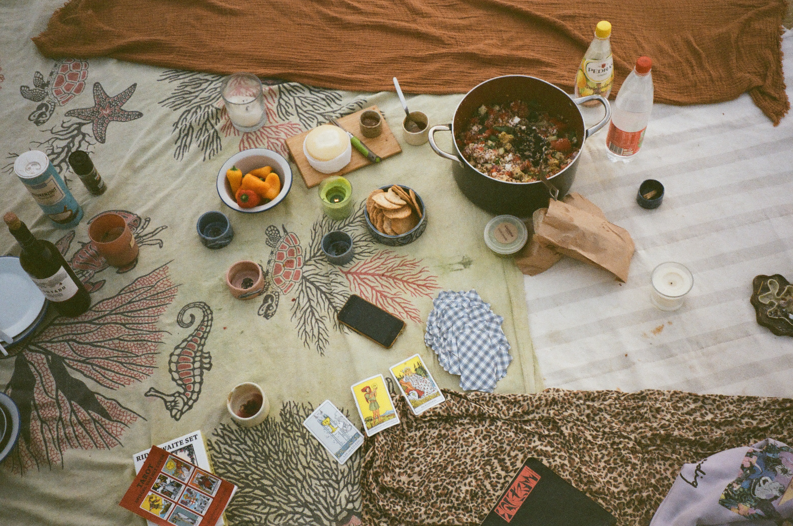 ‘get prepared for a fruitful evening where the tarot will decide your outfit, the candles eat your food and the spiral of life will be brought by the light. your spirit animal will crawl out of the figs and knowledge will be given birth to by merging of the sun and the moon.