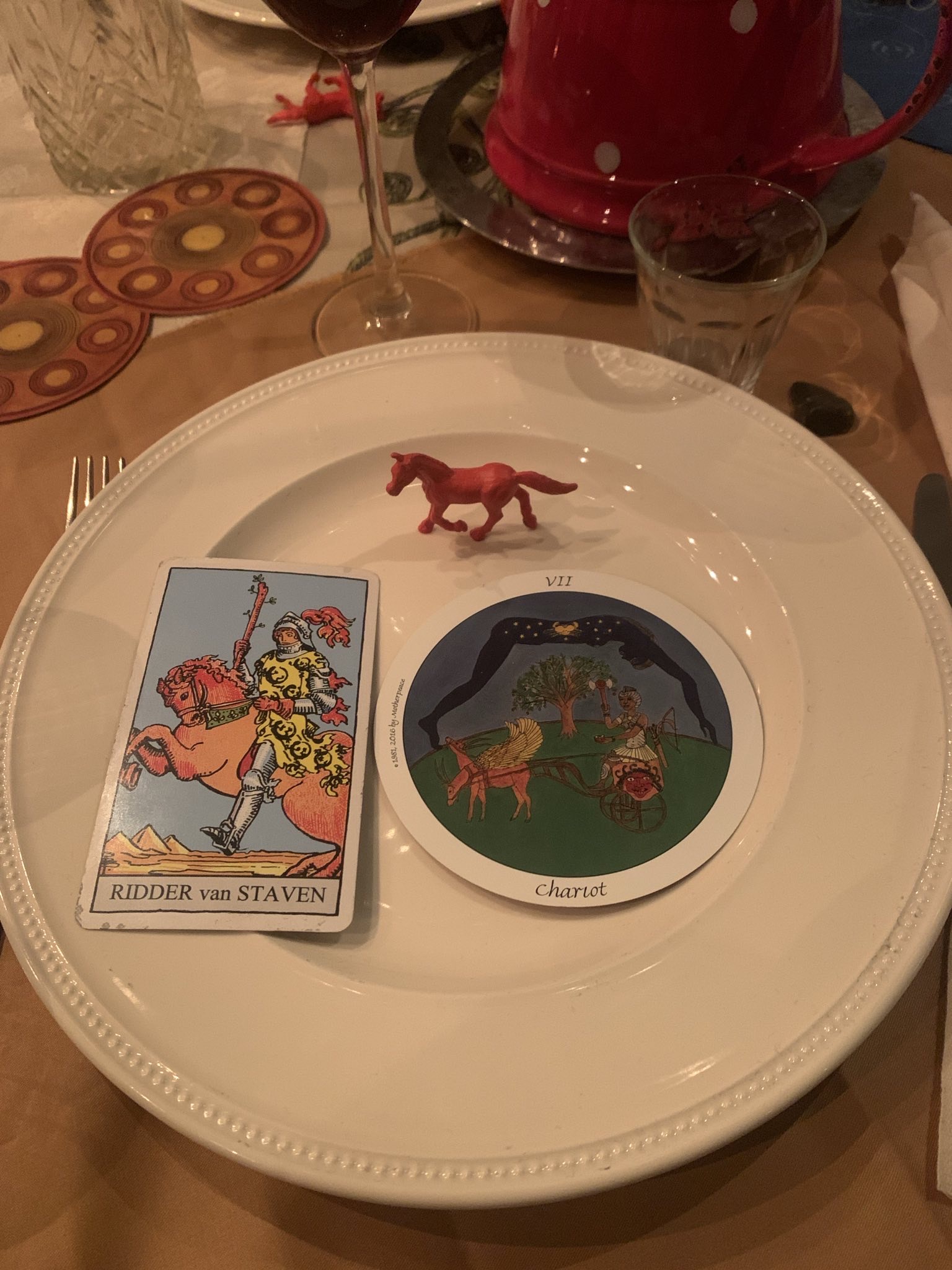 For this event a lot of improvising was needed. Which is my natural habitat. I invited my close friends and family together to celebrate life, to introduce them to my beloved traditions (dining together and tarot) without any expectations or obligations. The table was set with gemstones and for everyone a special customized (napkin) ring.